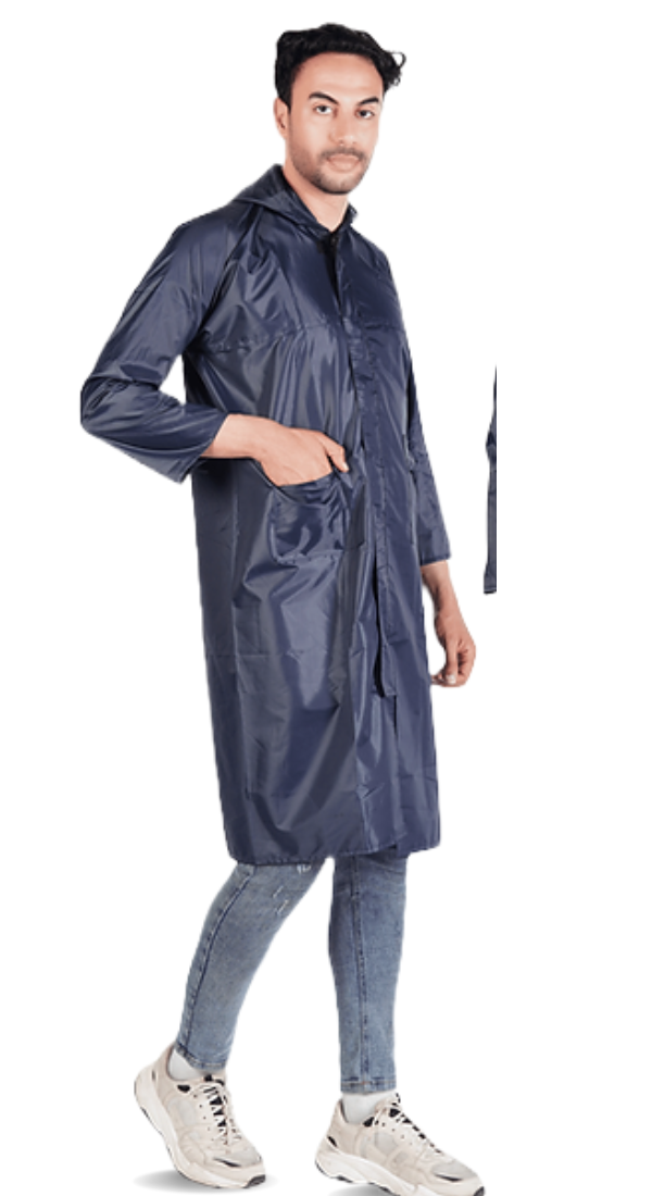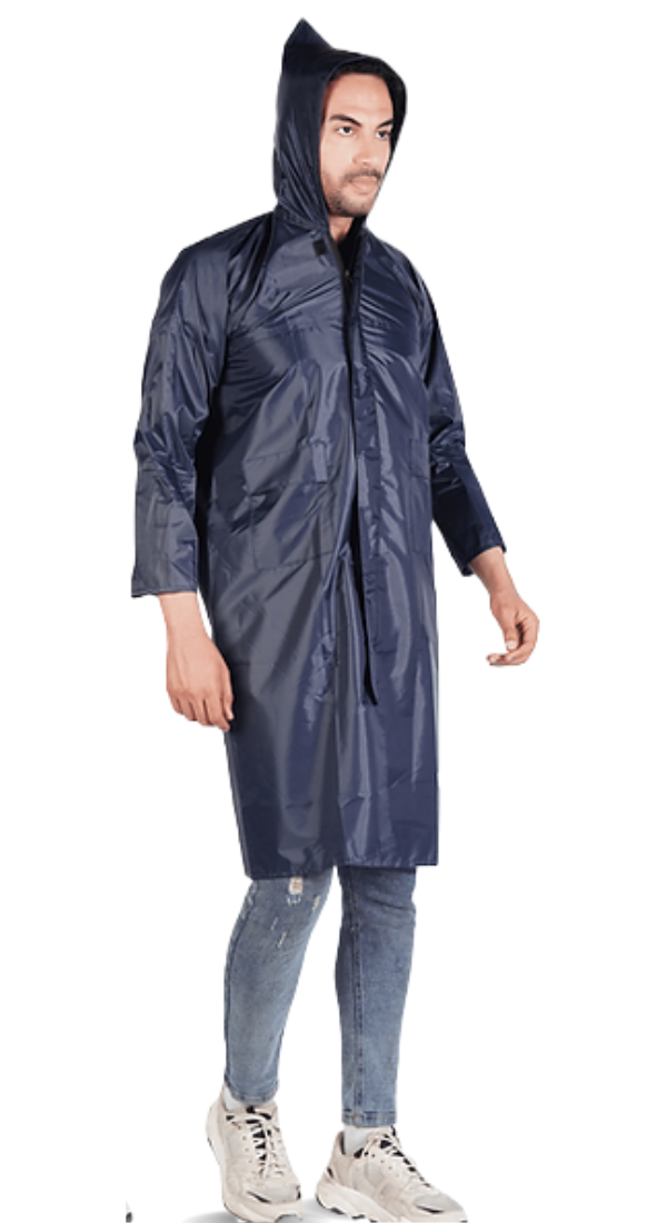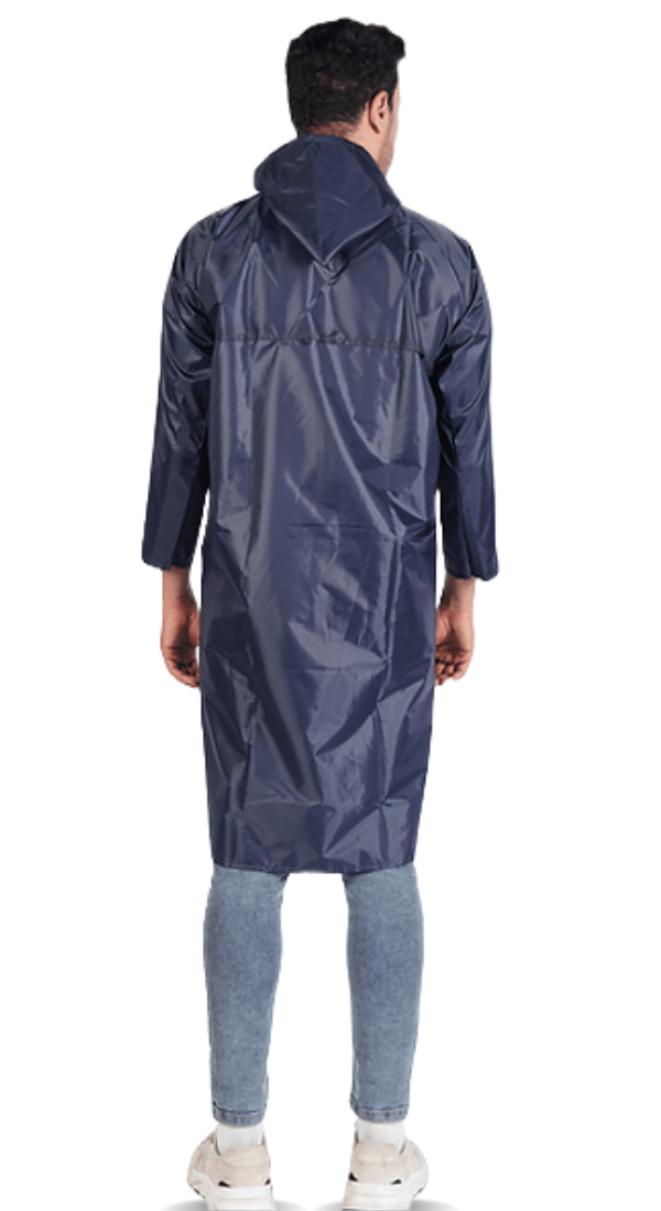 The rain coat features full length zipper that have flaps over them to protect from harsh weather condition water seepage. Zipper flaps are protected with Velcro sealing. Jacket features an adjustable hood. . It have two front large pockets to store immediate essentials easily. Pockets have flaps over them to prevent water from entering into it so that things are secure in it. Every joint is seam sealed to ensure no water leakage. Its fiber is prepared using Nano-scale technology for preparation high density polyester. Oversees knee long raincoat comes with a storage pouch so that it is easy to store and carry easily likewise. The versatile OVERSEES raincoat is an ideal choice for any outdoor activity like: Fishing, camping, hiking, swimming off-road and others alike. Dry completely before folding and storing.