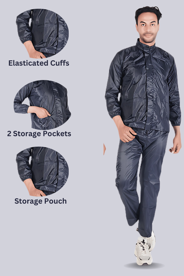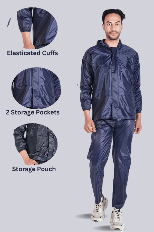 OVERSEES Raincoats are 100% waterproof. This rain coat features two large front pockets to store immediate essentials with you. It also includes a storage bag for easy store and carry. Elasticated cuffs provides versatile fit for everyone. This long knee rain coat is made from high density waterproof material that’s why it is 100% waterproof. Chain is provided with flaps over them to provide extra protection from water. Nano scale technology used for making this raincoat a premium class quality product.